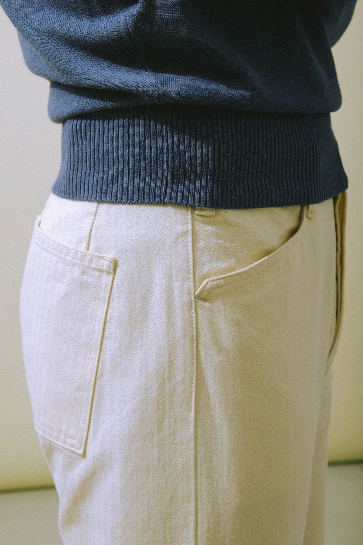 Wear it with tailoring to emphasize the straight leg and subtle texture of the herringbone twill. When worn more casually with a Nonpareil T-Shirt, the interest switches and focus is drawn to the shape of the front pockets and the back patch pockets. All these intricate details make up the French Pocket Trouser, for any and all occasion.